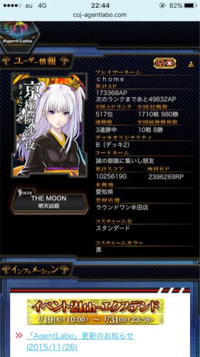こんにちは、ちょめです。 ©︎SEGA すごい勝てました。 半日で+5000AP。流石に嬉しいです。1.使用デッキ 2.エラッタについて 1.使用デッキ 青黄消滅コントロールです。エラッタにてオシオキされるカードのオンパレード。今日は対面が、エラッタを免れる緑アグ…
